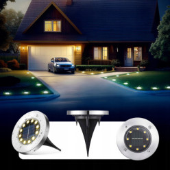 Lampa solarna ogrodowa LED 8szt dyski gruntowe czujnik zmierzchu