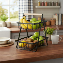 Koszyk na owoce warzywa dwupoziomowy piętrowy kosz metalowy czarny loft