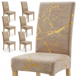 Pokrowiec na krzesło welurowy uniwersalny zestaw 6szt beżowy - złoty