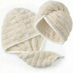 Turban z mikrofibry ręcznik na głowę do włosów miekki superchłonny beżowy